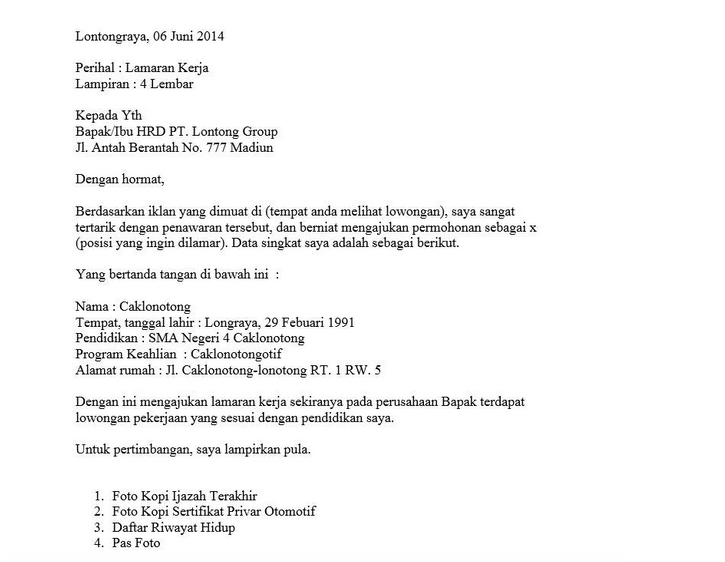 27 Contoh Surat Lamaran Lowongan Kerja Kumpulan Contoh Gambar