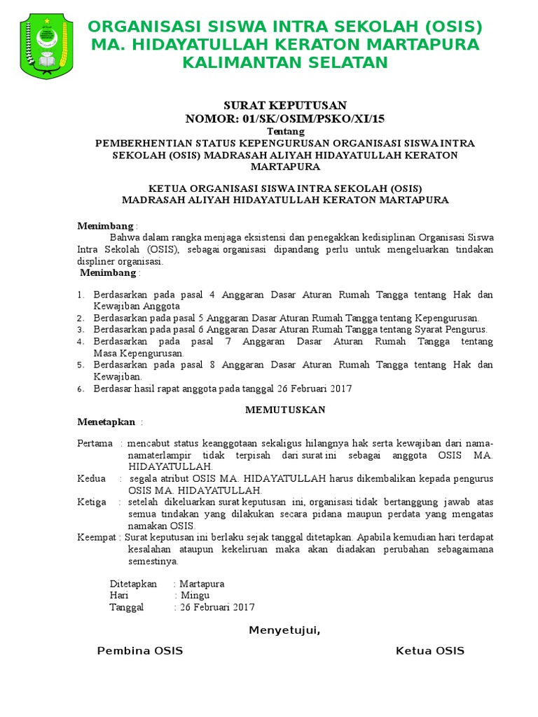 Surat Pemberhentian Osis