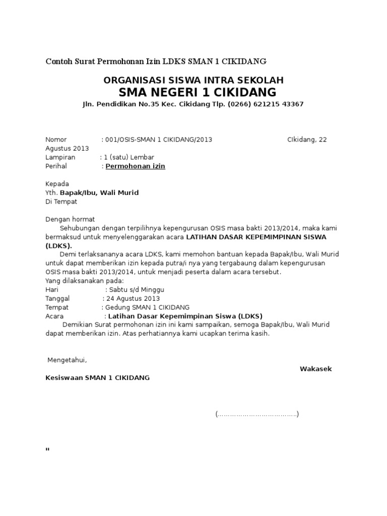 Contoh Surat Permohonan Izin Ldks Sman 1 Cikidang
