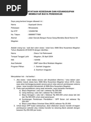 Contoh Surat Pernyataan Kesanggupan Membayar Spp Gawe Cv