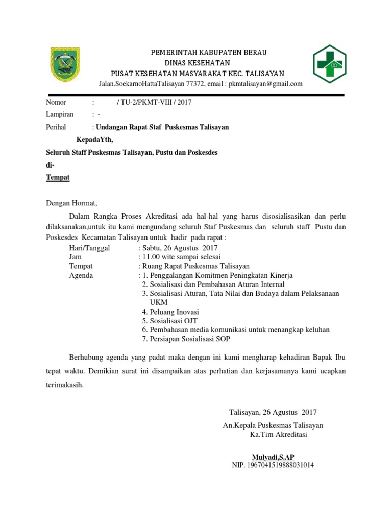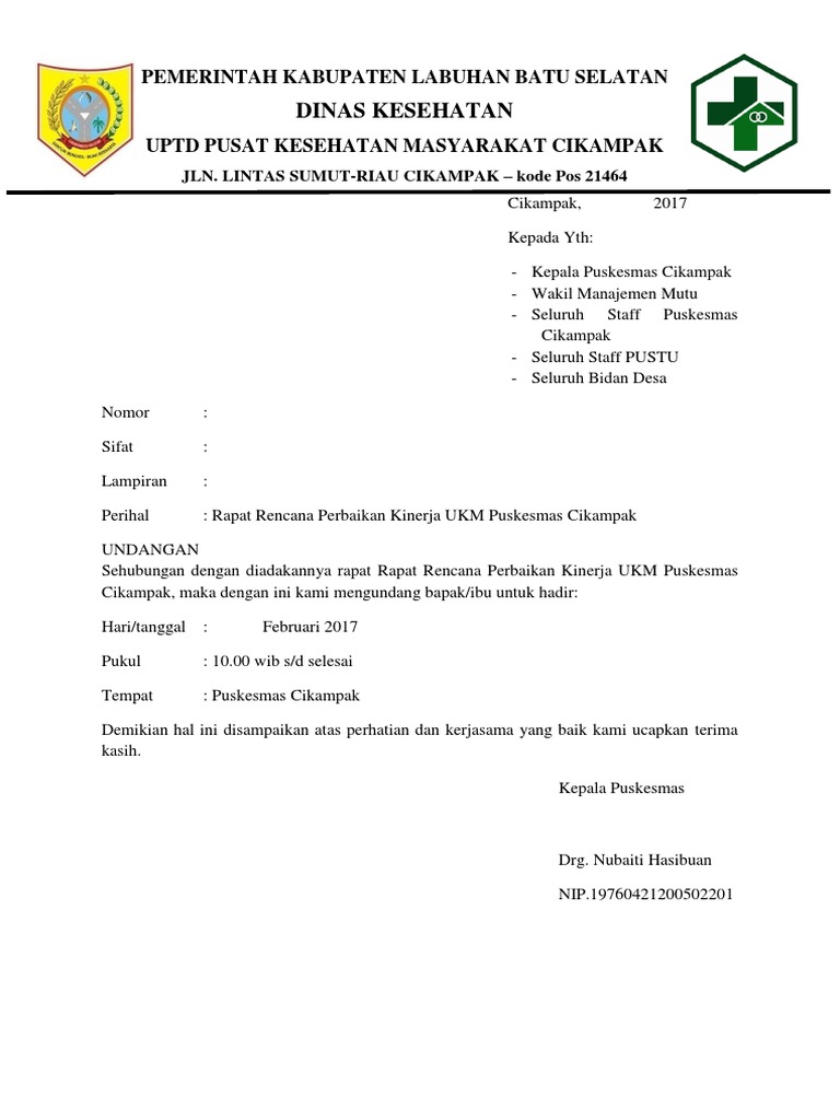Contoh Surat Undangan Rapat Dinas Kesehatan