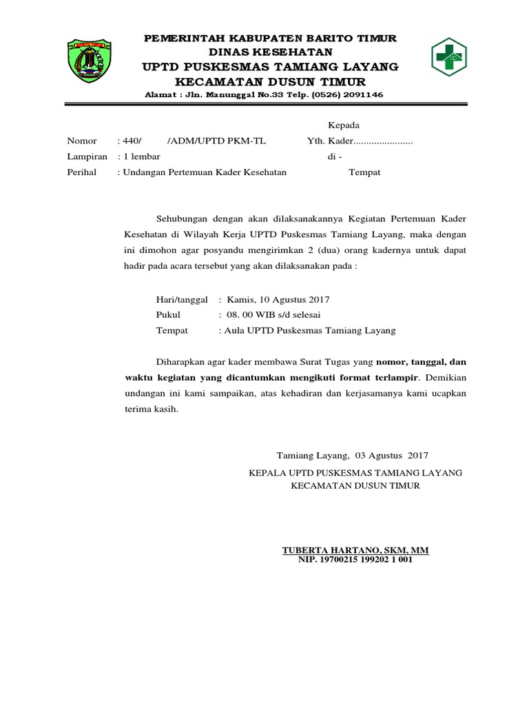Surat Undangan Pertemuan Kader Kesehatan Juli 17