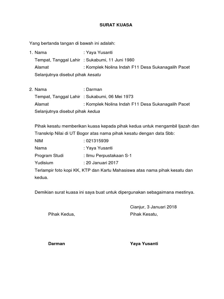 Contoh surat kuasa surat kuasa menjadi sebuah solusi saat pemberi kuasa tidak bisa melakukan sebuah kegiatan maupun pekerjaan secara langsung tetapi tetap ingin melaksanakan pekerjaan tersebut dengan cara memberikan surat kuasa terhadap orang lain yang mewakili. Surat kuasa pengambilan ijazah di universitas terbuka source. Ini dia salah satu contoh surat kuasa pengambilan ijazah yang baik dan benar. 15 contoh surat kuasa pengambilan ijazah paling lengkap bagi orang yang sudah menyelesaikan pendidikan baik itu jenjang sd smp sma sampai dengan kuliah tentu akan memiliki ijazah.