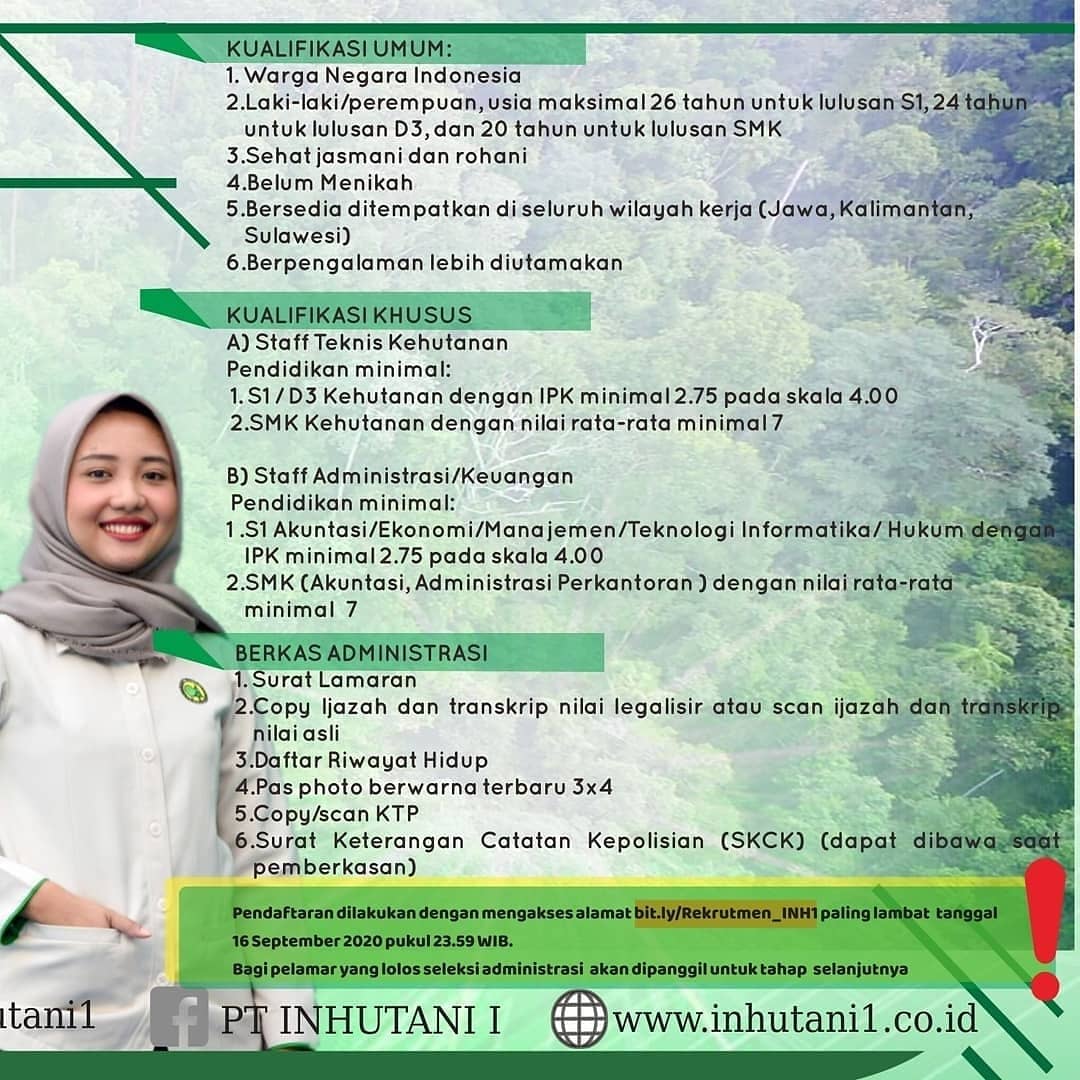 Rekrutmen lowongan kerja pendaftaran bumn pt inhutani i tahun 2020 persyaratan umum.