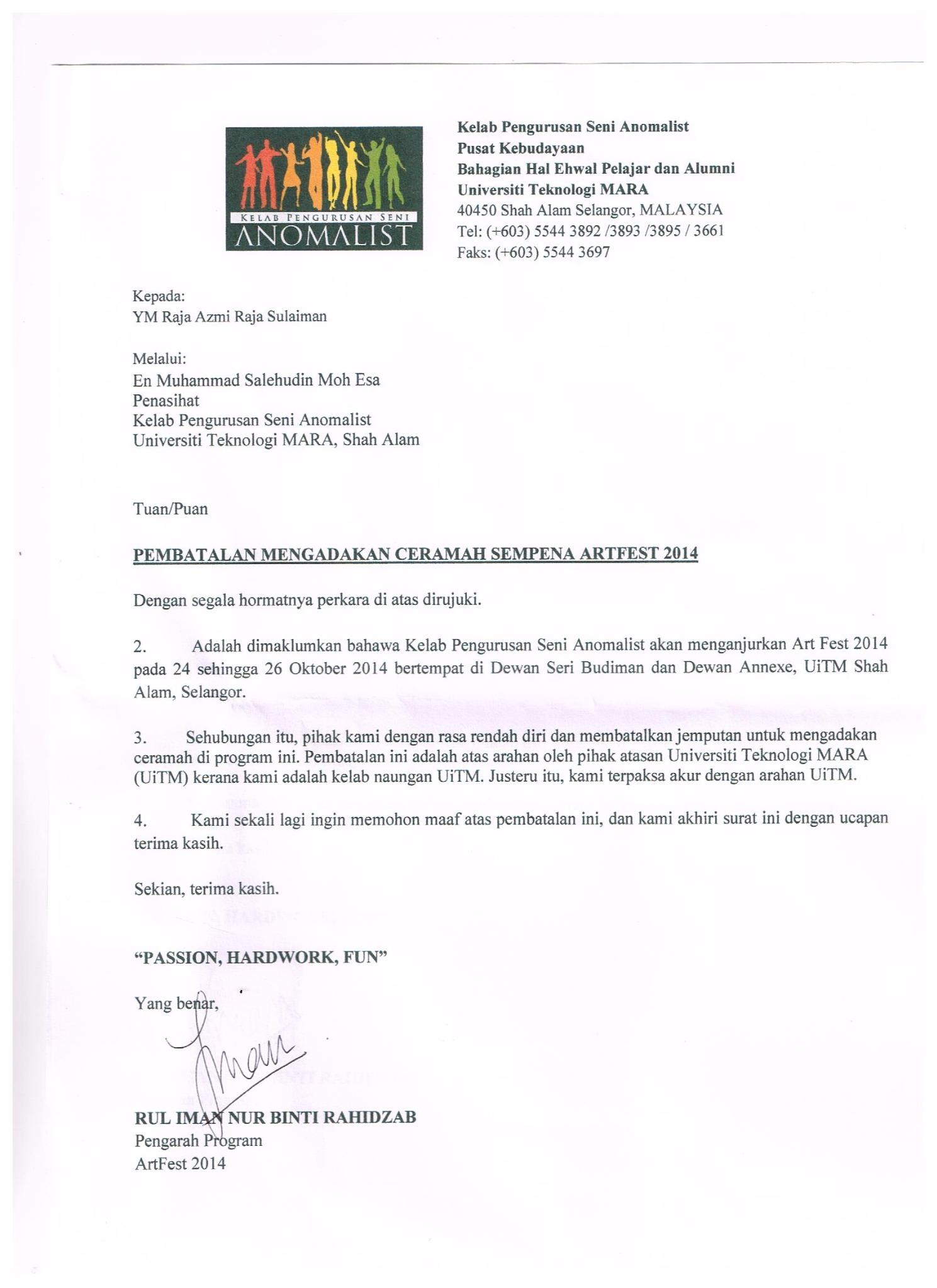 Terserah menjawab atasan dengan kata terserah merupakan penghinaan. Surat permohonan maaf jakarta 14 september 2013 kepada yth.
